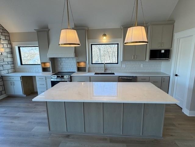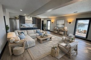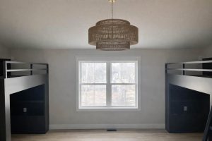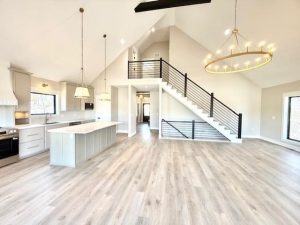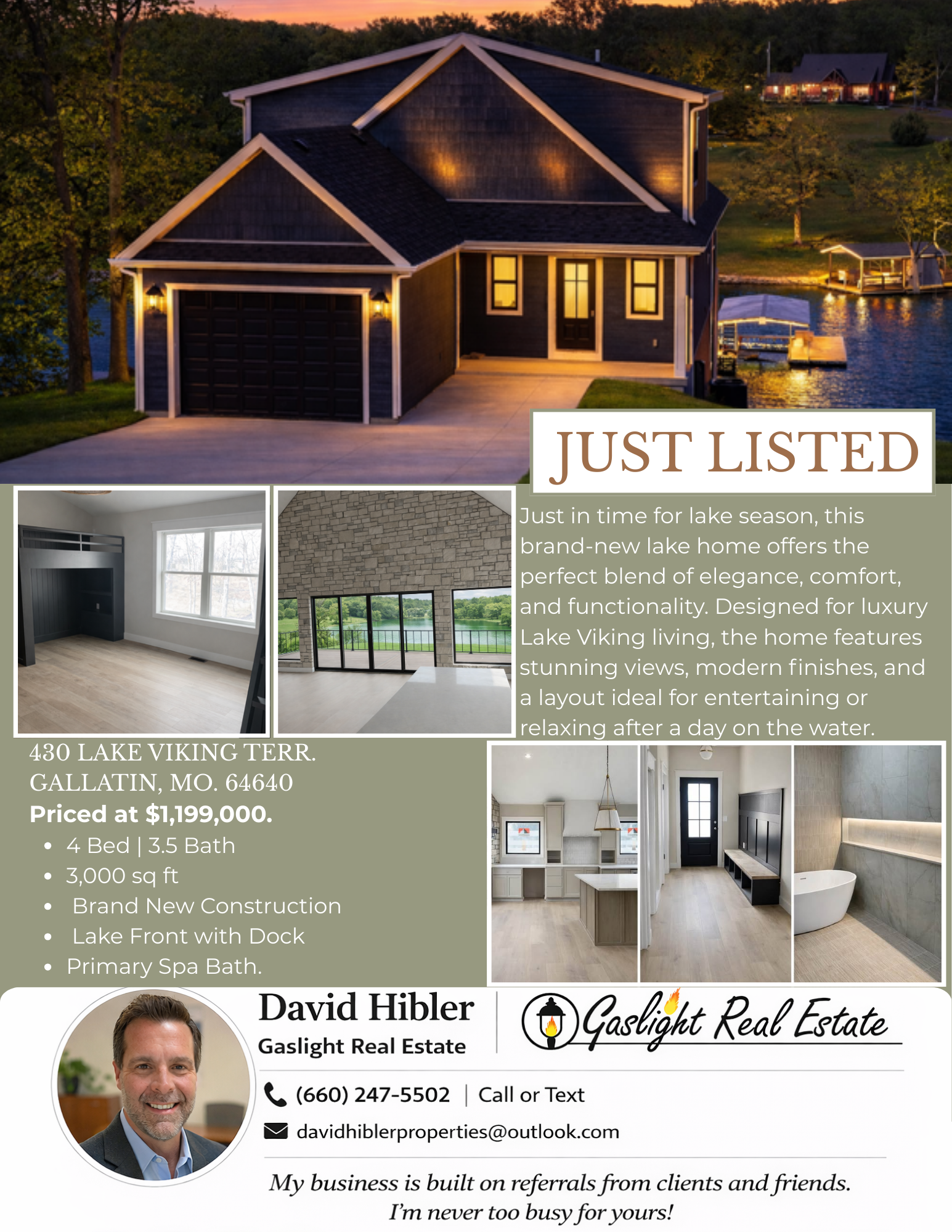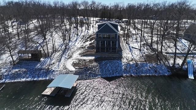 Brand-new luxury lakefront retreat located on Lot 163 with approximately 96 feet of shoreline, perfectly positioned in one of Lake Viking’s most highly sought-after coves. This stunning home offers 3 bedrooms, a spacious bunk room, and 3.5 baths, thoughtfully designed to capture the beauty of lake living while showcasing high-end finishes, exceptional craftsmanship, and effortless functionality. The expansive great room features a dramatic 25-foot floor-to-ceiling stone accent wall, creating a striking architectural centerpiece. The designer kitchen is both elegant and functional, featuring quartz countertops, stainless steel appliances, oversized island perfect for gathering, and a walk-in pantry. The main-level primary suite offers a private lakeside retreat with a large closet and a spa-inspired bathroom that delivers with a tiled wet room. Upstairs, you’ll find a large bedroom, a full bathroom, and an impressive built-in 6-person bunk room. The lower level expands the home’s entertaining possibilities with a spacious family room that opens to the covered deck, a bar and wine rack, an additional bedroom and full bath, and a large unfinished storage/flex space. The property also features a one-car garage, covered dock with lift, and a lakeside fire pit area where nights are spent around the fire sharing stories and creating lifelong memories. With its premium cove location, 96 feet of shoreline, luxury finishes, and thoughtfully designed living spaces, this home offers the perfect setting to fully embrace the Lake Viking lifestyle. This brand-new home includes a 12-month builder warranty from the contractor, providing peace of mind as you begin your next chapter at the lake. This is more than a home—it’s a place to wake up to water views, gather with friends on the deck, and experience lake life the way it was meant to be lived.
