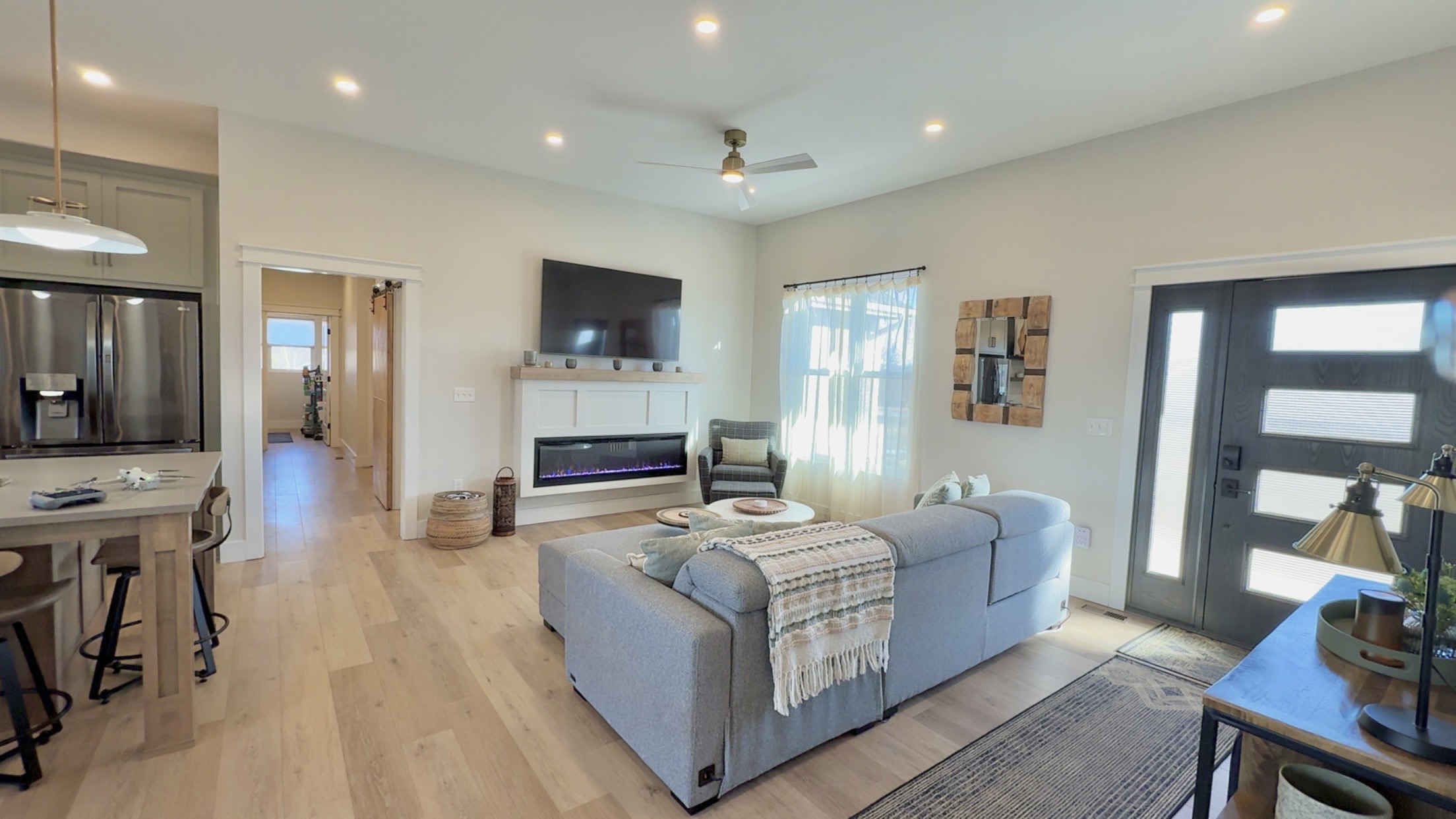 A truly distinguished residence, where refined design meets breathtaking natural beauty. This exceptional custom-built, open-concept 4-bedroom, 3.5-bath home is thoughtfully crafted for elevated living, seamless entertaining, and multi-generational comfort, all framed by sweeping panoramic lake views. At the center of the home, the designer kitchen blends sophistication and function with open shelving, an expansive island with seating, oversized storage drawers, and a stunning 7×7 walk-in pantry ensures a pristine, clutter-free culinary space worthy of the most discerning buyer. Set on two private lots, the property offers rare space and tranquility, allowing you to enjoy golden sunrises, dramatic sunsets, and unobstructed views of Lake Viking’s Fourth of July fireworks from the comfort of home. Every detail has been curated to embrace the lake lifestyle while maintaining privacy and serenity. The finished lower level features soaring 10-foot ceilings and serves as a luxurious guest retreat. Modern design elements include an epoxy floor, a wet bar with a refined speakeasy ambiance, and a climate-controlled garage, creating a perfect blend of comfort and sophistication after a day on the water. Outdoor living is equally impressive, featuring a maintenance-free deck and a covered walkout patio below with a finished ceiling, ceiling fans, and dimmable soffit lighting that enhances evening ambiance while providing added security. Surrounded by mature trees, abundant wildlife, and tranquil lake scenery, this nearly new home is impeccably maintained and truly one of a kind. Additional highlights include a zero-entry design, ample storage throughout, spray foam insulation, a two-car attached garage, manicured landscaping, and a coveted corner-lot setting offering million-dollar views. Conveniently located near a lake entrance, this remarkable home delivers luxury, comfort, and timeless Lake Viking living at its finest.
